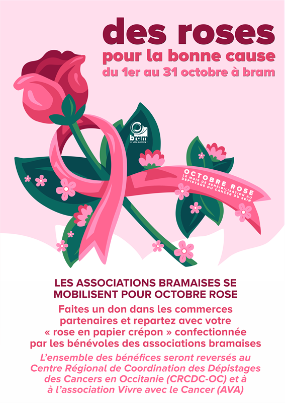 A l’occasion d’Octobre Rose, le mois dédié au dépistage du cancer du sein, plusieurs associations bramaises s’unissent et se mobilisent pour la bonne cause en organisant une action caritative, en partenariat avec l’association chaurienne Vivre avec le Cancer (AVA) et le Centre Régional de Coordination des Dépistages des Cancers en Occitanie (anciennement ADOC11).